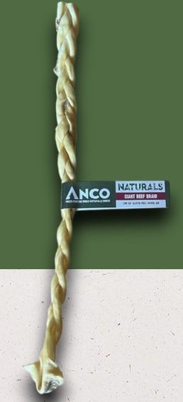A Giant Braid that’s naturally high in protein and low in fat? What more could your dog wish for! Especially if they already know and love our smaller braids – Giant braids offer a longer lasting option. These are naturally high in high quality protein which essential to have in your dog’s diet, and also being nice and healthy with a super low fat content! Suitable for dogs on a low fat diet or with pancreatitis. Allow your dog to absorb all delicious natural flavours and benefits of Beef while staying entertained and cleaning their teeth at the same time! Chewing down on the treat helps the removal of tartar and plaque from the teeth. *Approximately 40-50cm*