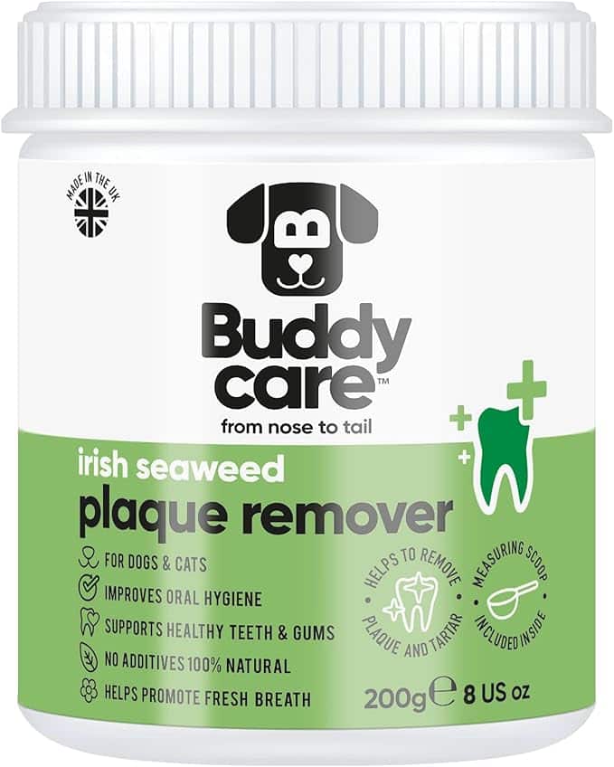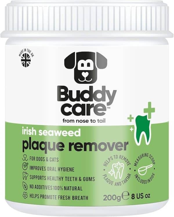 Give Your Pup The Gift Of A Cleaner, Healthier Smile With Buddycare Irish Seaweed Plaque Remover. This Natural Supplement Is Packed With The Goodness Of Hand-Harvested Irish Seaweed, Helping To Prevent Plaque And Tartar Buildup While Supporting Healthy Teeth And Gums – All Without The Need For Brushing!