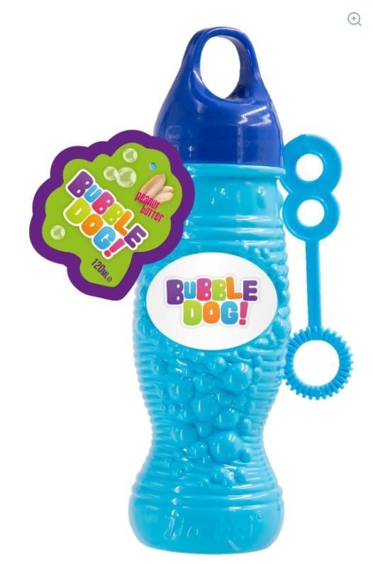 Peanut Butter scented doggie bubbles, they are a treat free way of rewarding your best friend and also getting lots of fun exercise.